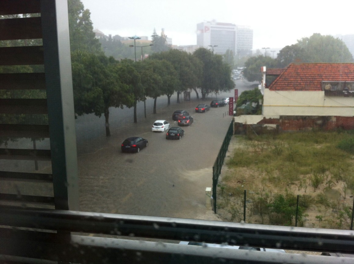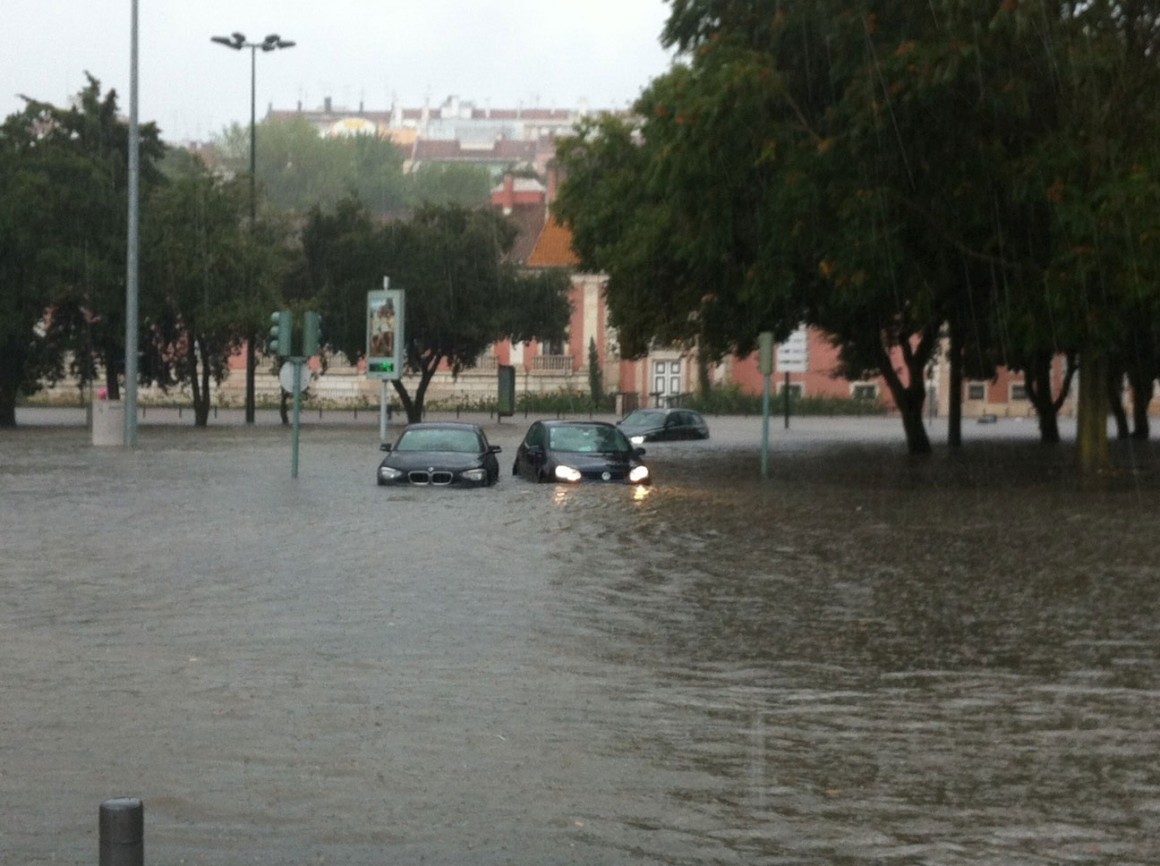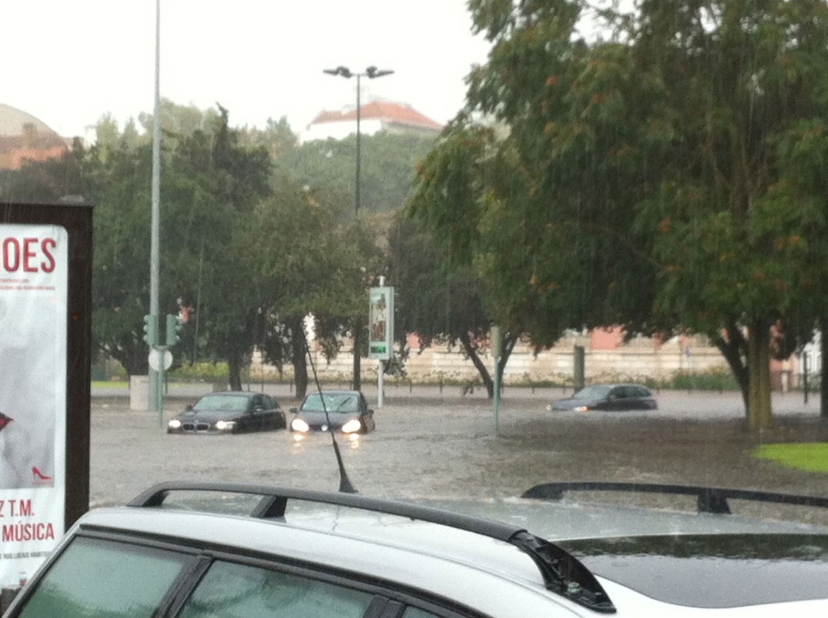 Logo ao início da tarde de ontem, boa parte de Lisboa ligou-se ao Tejo. Entre as 13h e as 15h, choveu copiosamente, alcançando os 18,7 milímetros na Gago Coutinho. Às 15h15, deu-se a preia-mar, já a circulação não se fazia na Baixa e a linha azul do Metro tinha parado. Mas o susto chegou já a meio da tarde, quando um muro de suporte de terras do Colégio D. Maria Pia, na Rua Madre Deus, em Lisboa, ruiu e se pensou que havia crianças desaparecidas. Não houve vítimas, mas não faltaram acusações: a Câmara de Lisboa acusou o Instituto Português do Mar e da Atmosfera (IPMA) de não ter avisado sobre o que aí vinha e o PSD da autarquia lançou críticas à gestão camarária.