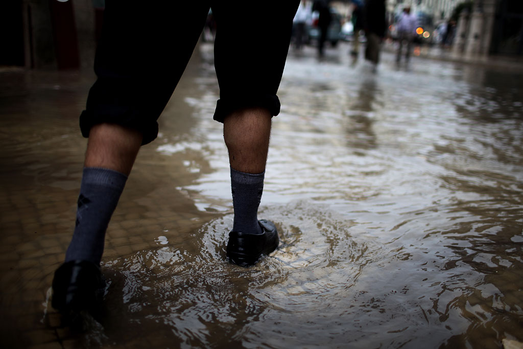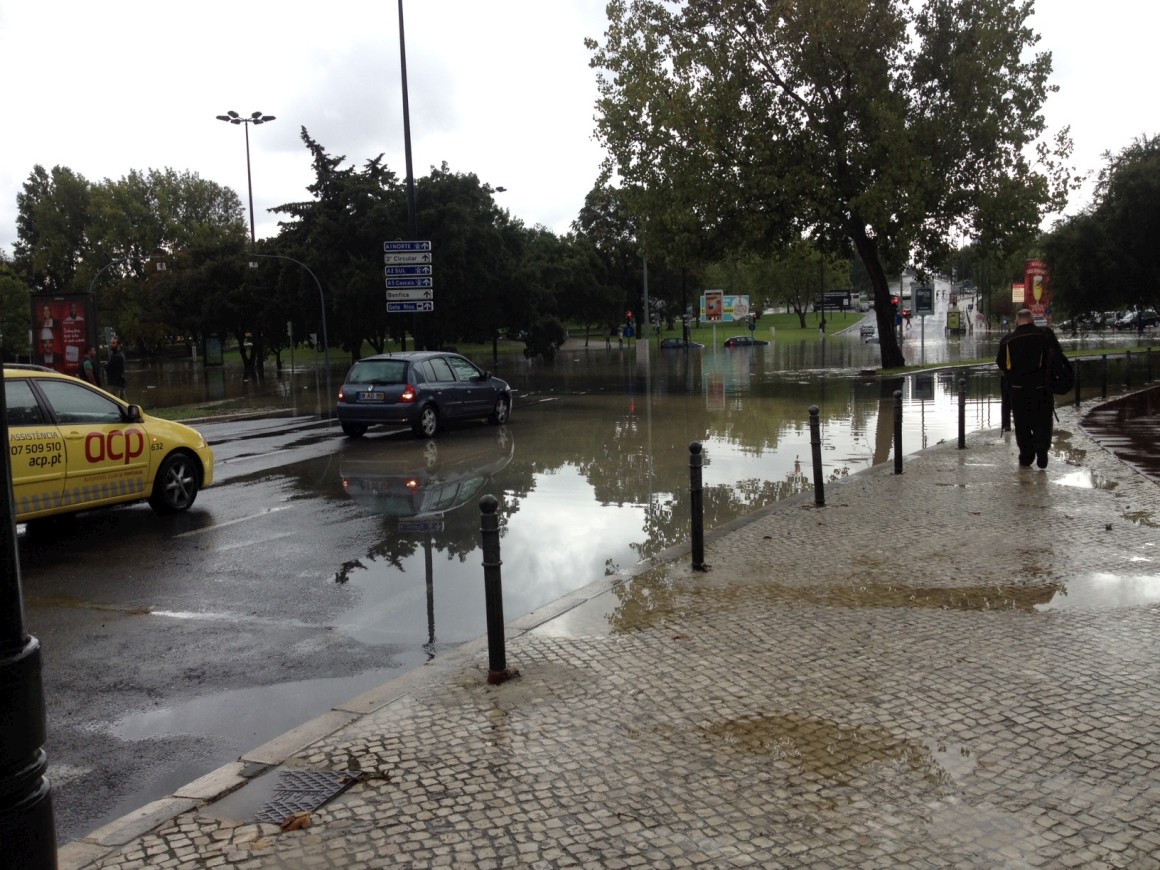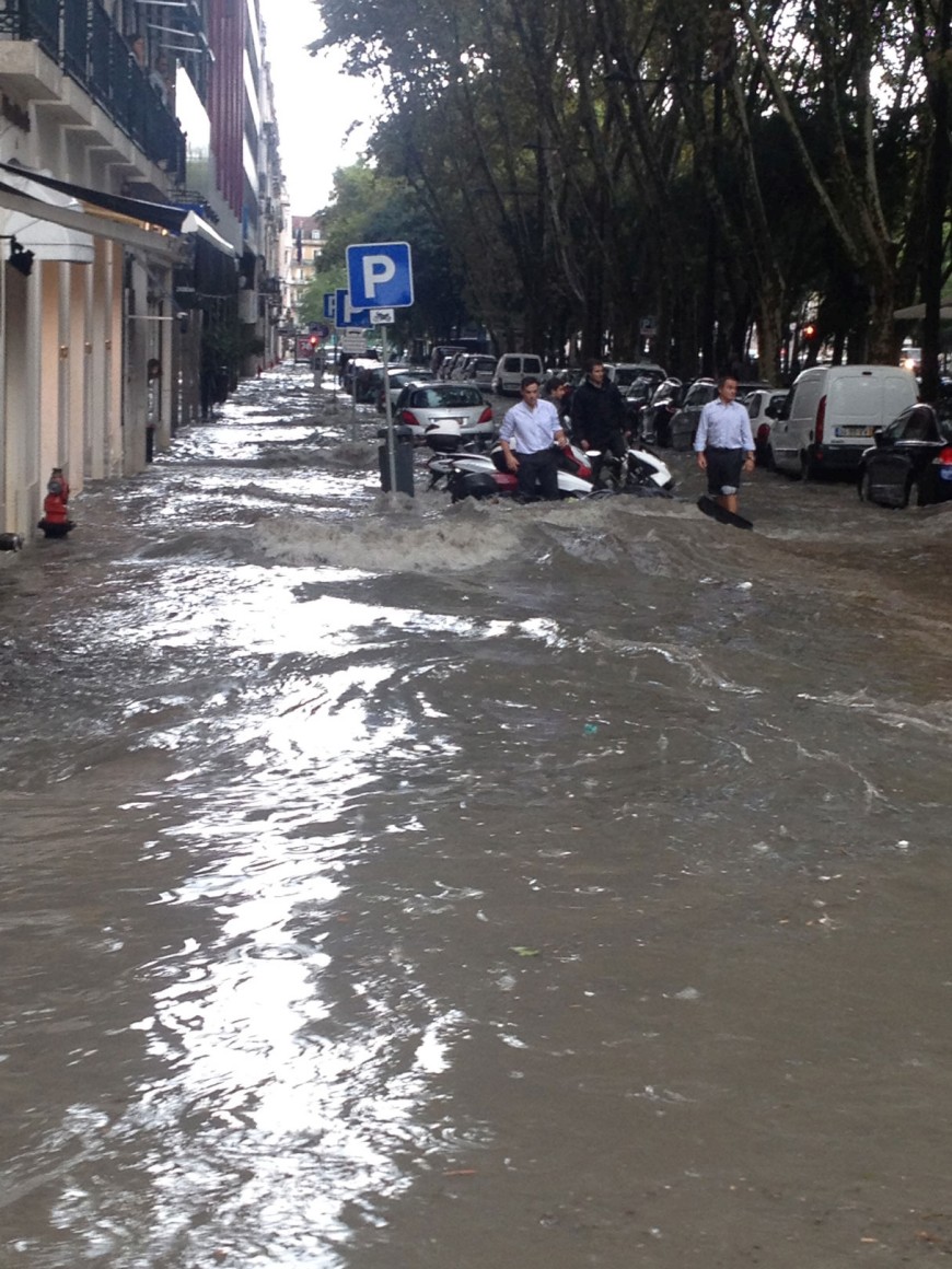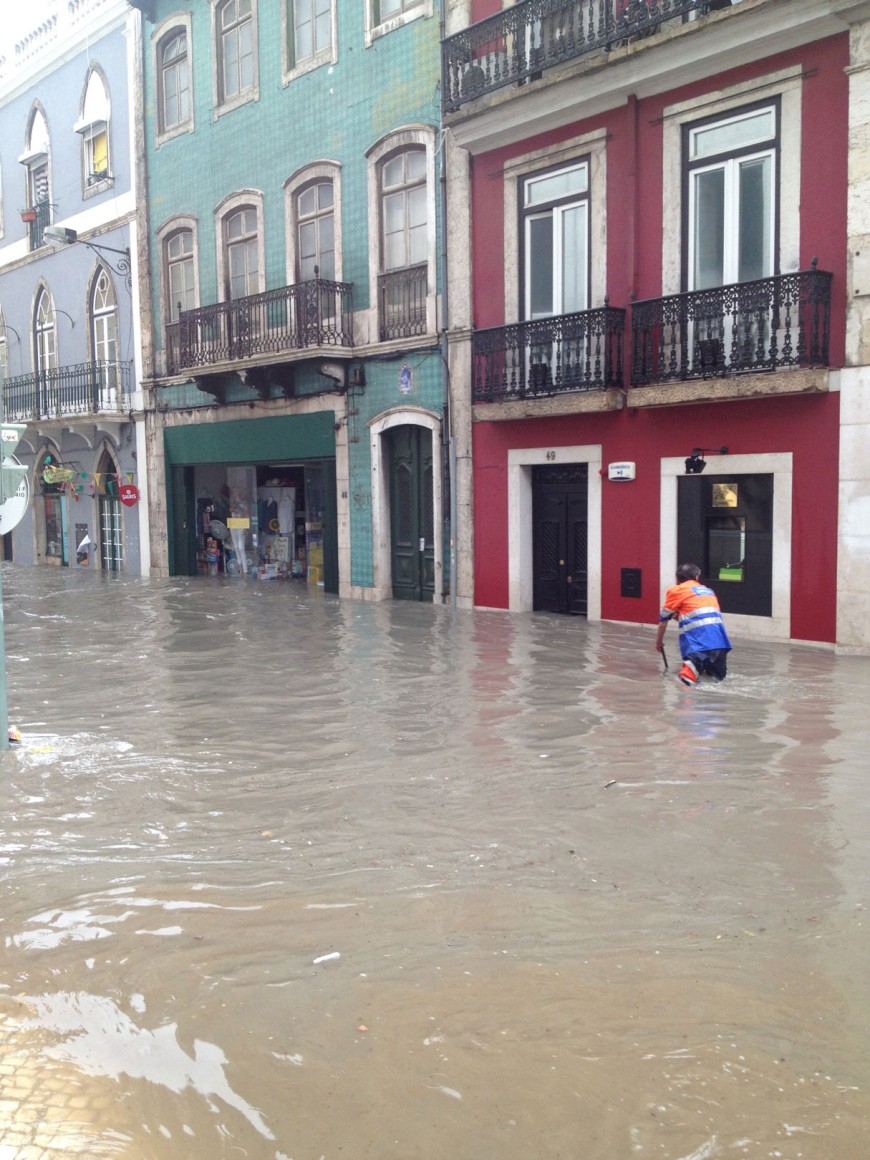 Logo ao início da tarde de ontem, boa parte de Lisboa ligou-se ao Tejo. Entre as 13h e as 15h, choveu copiosamente, alcançando os 18,7 milímetros na Gago Coutinho. Às 15h15, deu-se a preia-mar, já a circulação não se fazia na Baixa e a linha azul do Metro tinha parado. Mas o susto chegou já a meio da tarde, quando um muro de suporte de terras do Colégio D. Maria Pia, na Rua Madre Deus, em Lisboa, ruiu e se pensou que havia crianças desaparecidas. Não houve vítimas, mas não faltaram acusações: a Câmara de Lisboa acusou o Instituto Português do Mar e da Atmosfera (IPMA) de não ter avisado sobre o que aí vinha e o PSD da autarquia lançou críticas à gestão camarária.