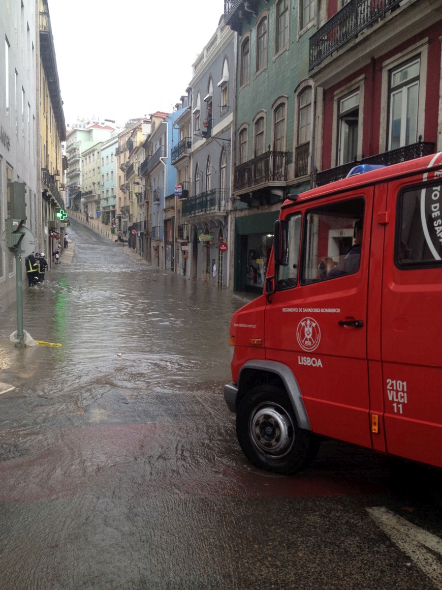 Antes disso, e a partir das 13h30, em boa parte da cidade caía um dilúvio. O Regimento Sapadores Bombeiros de Lisboa (RSB) registou 121 ocorrências entre as 14h e as 16h, devido às inundações.