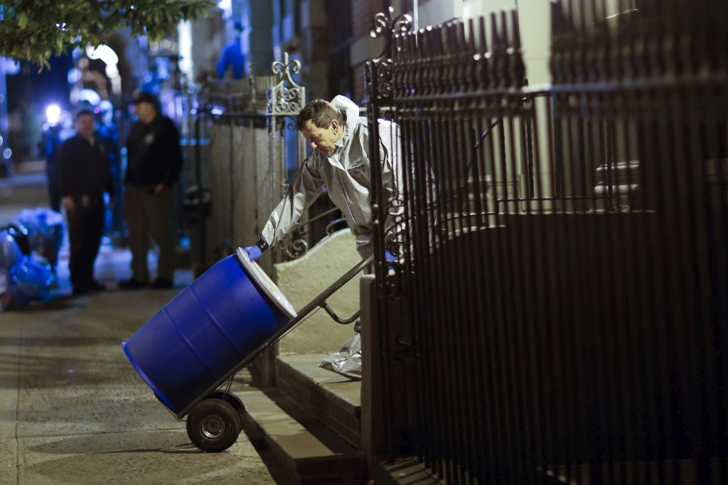Um profissional a sair do apartamento de Craig Spencer, que foi descontaminado