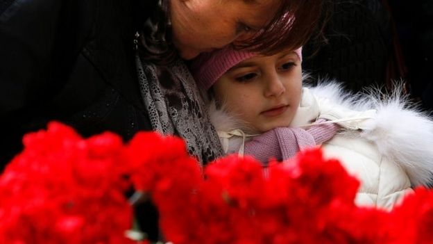 Image copyrightAPImage captionThe majority of those who died were Russian, with their families grieving them at Rostov-on-Don airport on Sunday"I came to give remembrance to those who died. I am from Rostov myself and although I don't personally know those killed, a lot of names are well known, it's a small city," local resident Boris told the AFP news agency.
