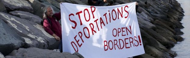 The returns were carried out calmly, despite a small protest at the gate of Lesbos port, where activists shouted 'No to deportations' and 'EU shame on you', the BBC's Sarah Rainsford at the scene said.