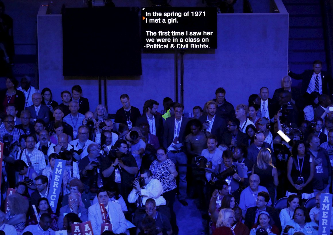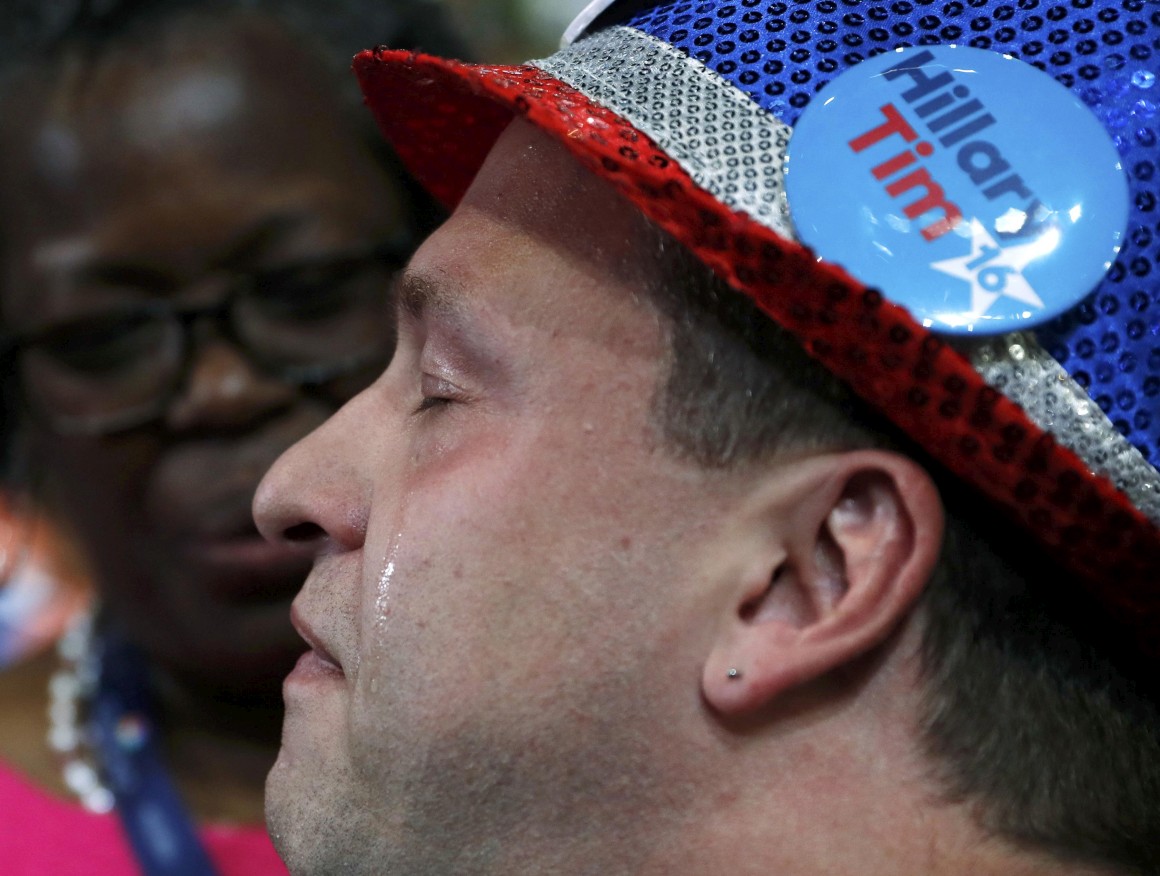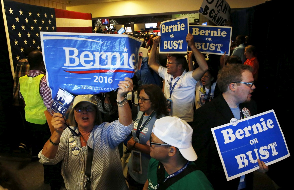 Mas esta mini-revolta, que também aconteceu na convenção do Partido Republicano contra a nomeação de Donald Trump, foi abafada pela onda de histeria que invadiu o pavilhão Wells Fargo ainda Bernie Sanders não tinha acabado de falar.